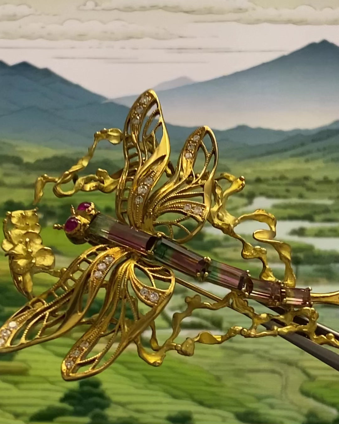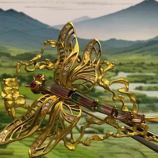 The dragonfly’s eyes are adorned with 0.2 carats of vibrant ruby stones, while its body is composed of five carefully selected tourmaline stones totaling 2.23 carats, showcasing a stunning array of colors. The wings are designed with delicate openwork and accented with multiple small diamonds totaling 0.32 carats, adding a subtle sparkle that enhances the piece’s elegance. 👀🪽