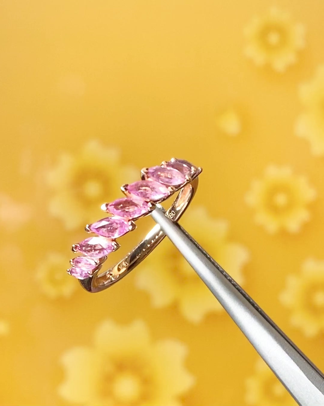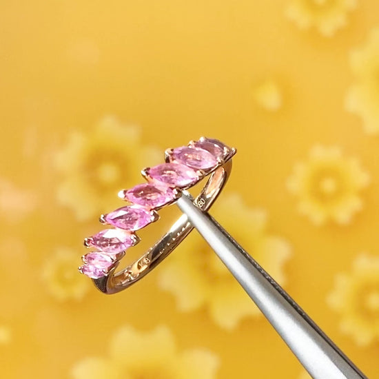 This exquisite 18k pink gold ring features nine marquise-cut pink sapphires, totaling 0.80 carats, arranged to resemble delicate flower petals that echo the soft hues of sakura blossoms. 🩷💎